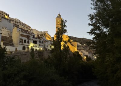 Alcalá del Júcar se alza en un espectacular cañón esculpido durante siglos por el río Júcar, que serpentea entre paredes de piedra caliza formando hoces profundas y curvas suaves. Las casas, de un blanco limpio y reluciente, parecen estar colgadas de la montaña, muchas de ellas excavadas directamente en la roca, formando cuevas que hoy siguen habitadas o se han convertido en bares, museos o lugares de encuentro con la tradición. Pasear por sus calles estrechas y empinadas es como retroceder en el tiempo, donde cada rincón esconde una historia y cada fachada conserva el alma del pasado.