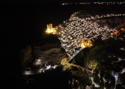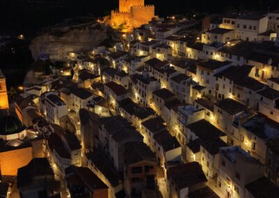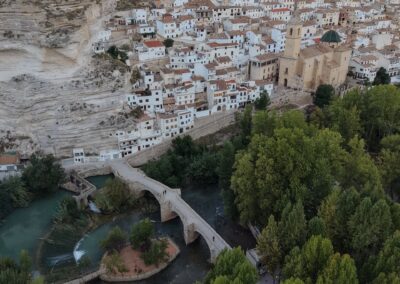 Más allá de su impresionante geografía, Alcalá del Júcar guarda un legado histórico y cultural que sorprende al visitante. El castillo árabe, situado en lo alto del cerro, ofrece unas vistas inmejorables del cañón del río y del casco urbano. La Iglesia de San Andrés, de estilo gótico tardío, impone con su sobria belleza. La plaza de toros, única en su estructura irregular, y el puente de piedra que cruza el Júcar completan una estampa que parece sacada de un cuento.